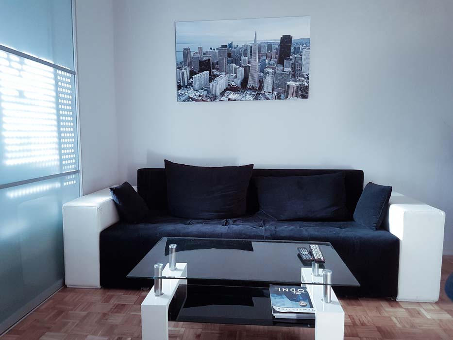 Sastoji se od udobne sofe s koja se moze transformisati u bračni krevet za 1 do 2 odrasle osobe. Na desnoj strani prostorije postoji improvizirana spavaca soba s udobnim bračnim krevetom 150x200cm, preko puta se nalazi američki ormar u kojem možete odloziti svoj veci prtljag-prikladan za goste koji dolaze na duži period. Kuhinja je izdvojena od ostalih prostorija,poseduje sav kuhinjski pribor,kao i kupatilo sa kadom gde vas cekaju cisti peskiri i raznorazna kozmetika.
