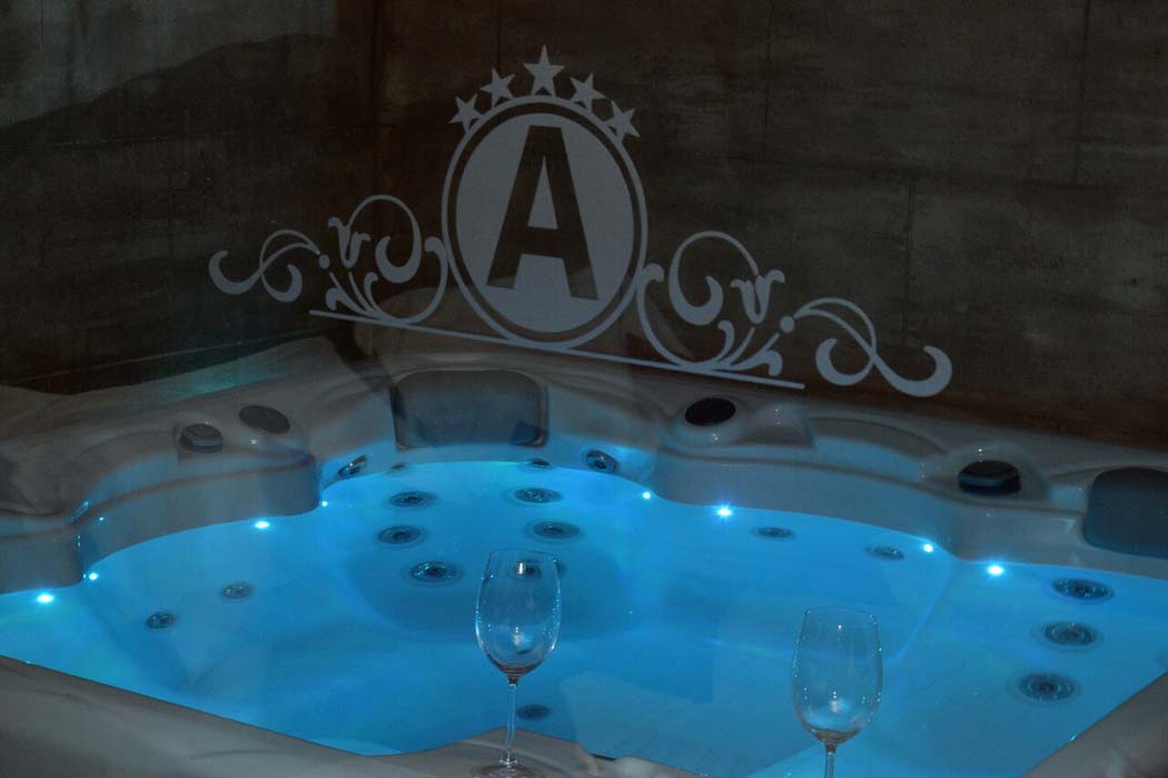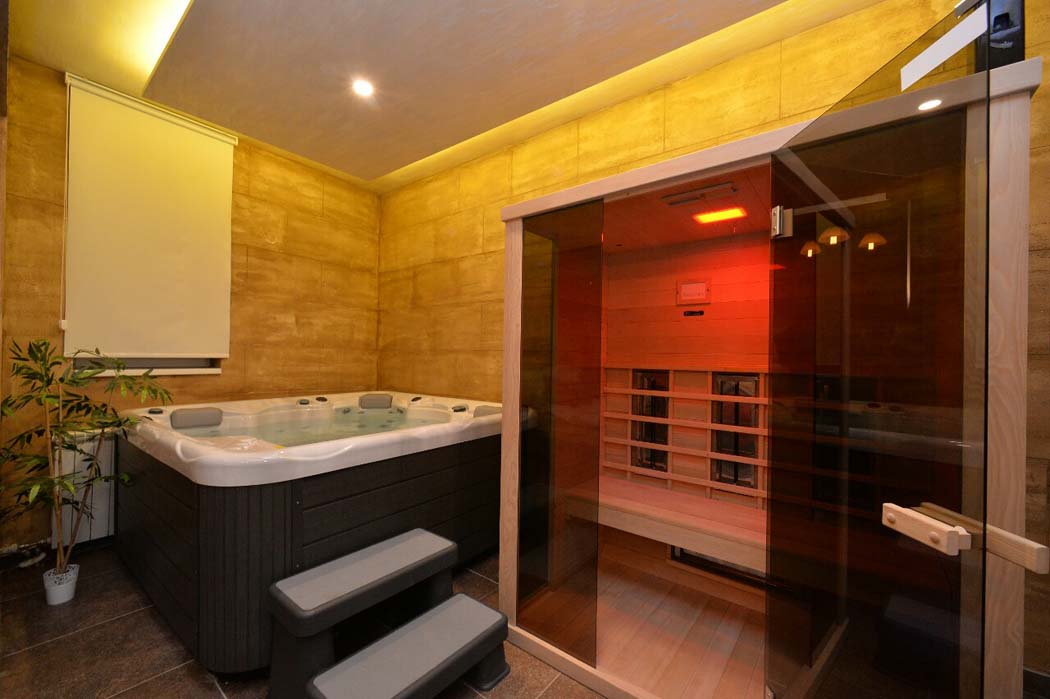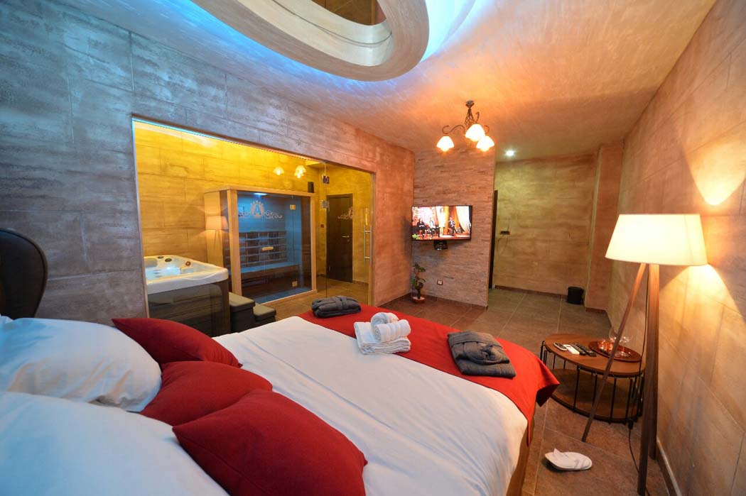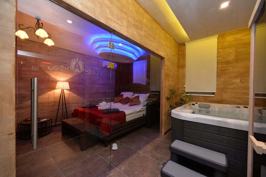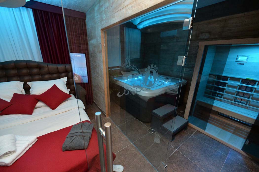 Udoban bračni krevet, hidromasažni SPA bazen za 3 osobe, odvojeno kupatilo sa tuš kabinom, kompletno opremljena mini čajna kuhinja sa indukcionim rešoom, mini bar frižiderom, WIFI, KTV, LCD TV, fen za kosu.