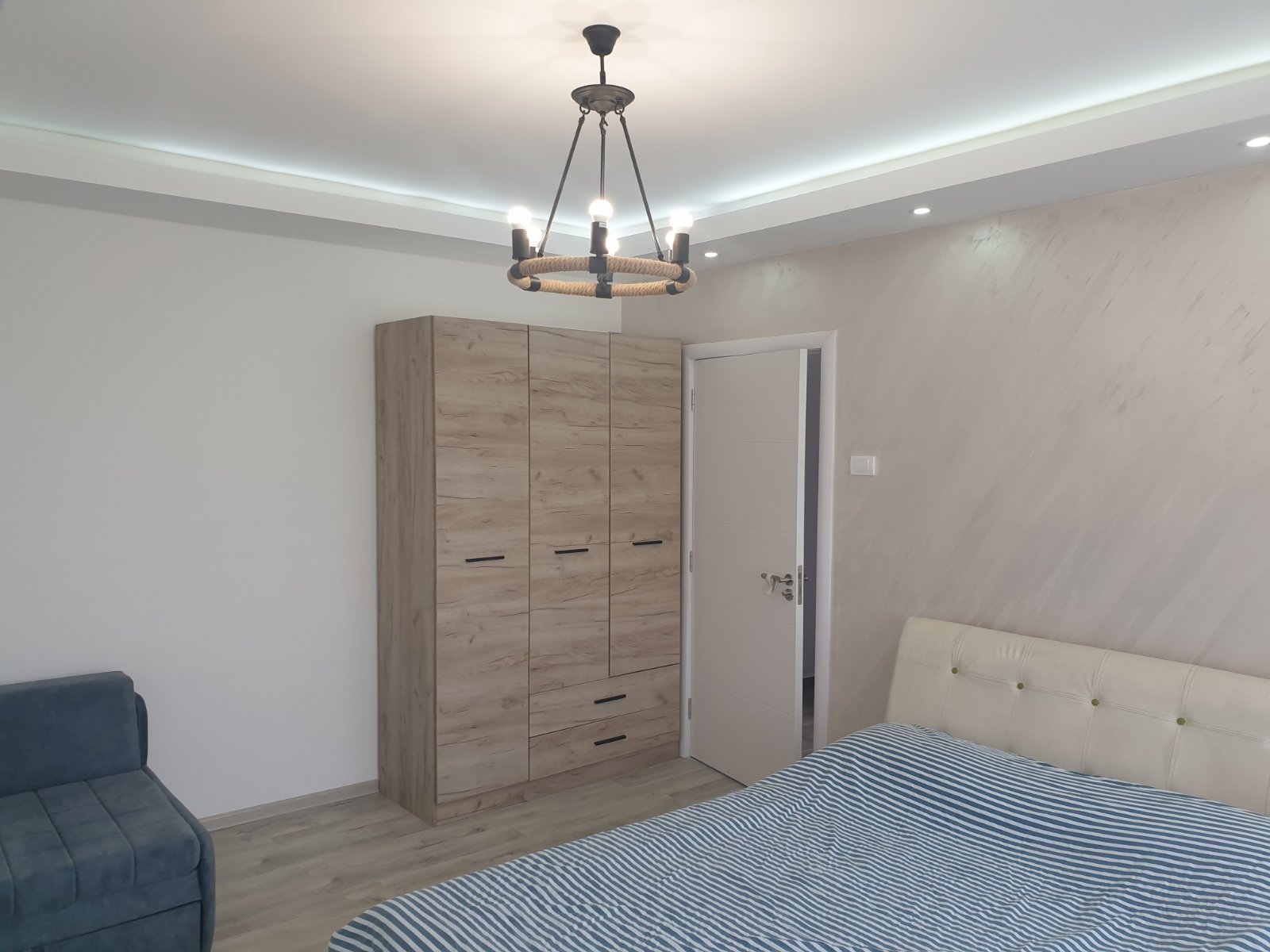 U spavaćoj sobi je bračni krevet 160 x 200 cm sa foteljom koja se razvlači 90 x 200 cm.