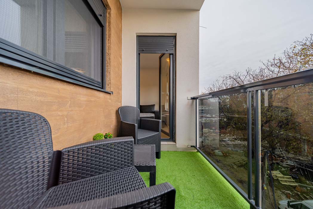 Ima odvojenu spavaću sobu, parking ispred zgrade, terasu. Opremljen je kompletno.