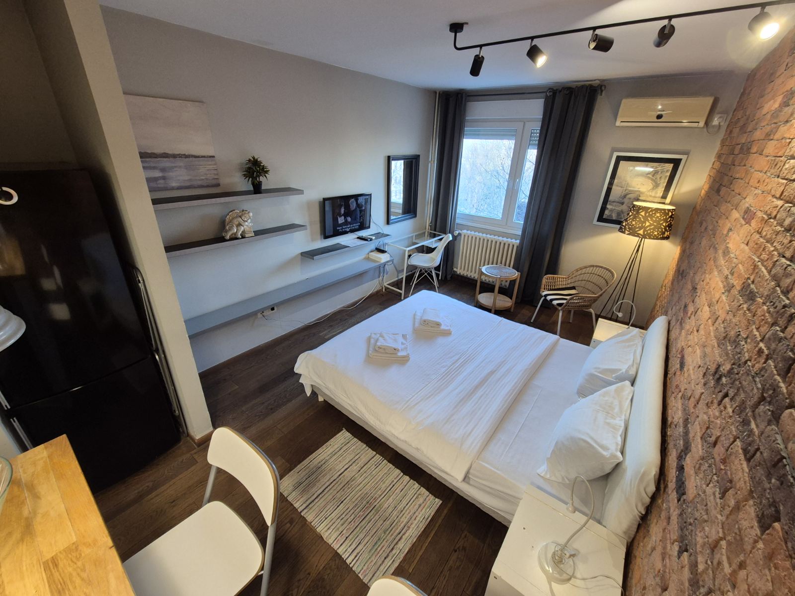 Studio Madera je moderno opremljen stan gde interesantna i kontrastna igra boja daje teksturu i dubinu perfektno osmišljenom prostoru. Vrlo funkcionalan studio za svaku preporuku, kako lokacijski tako i po lepoti.