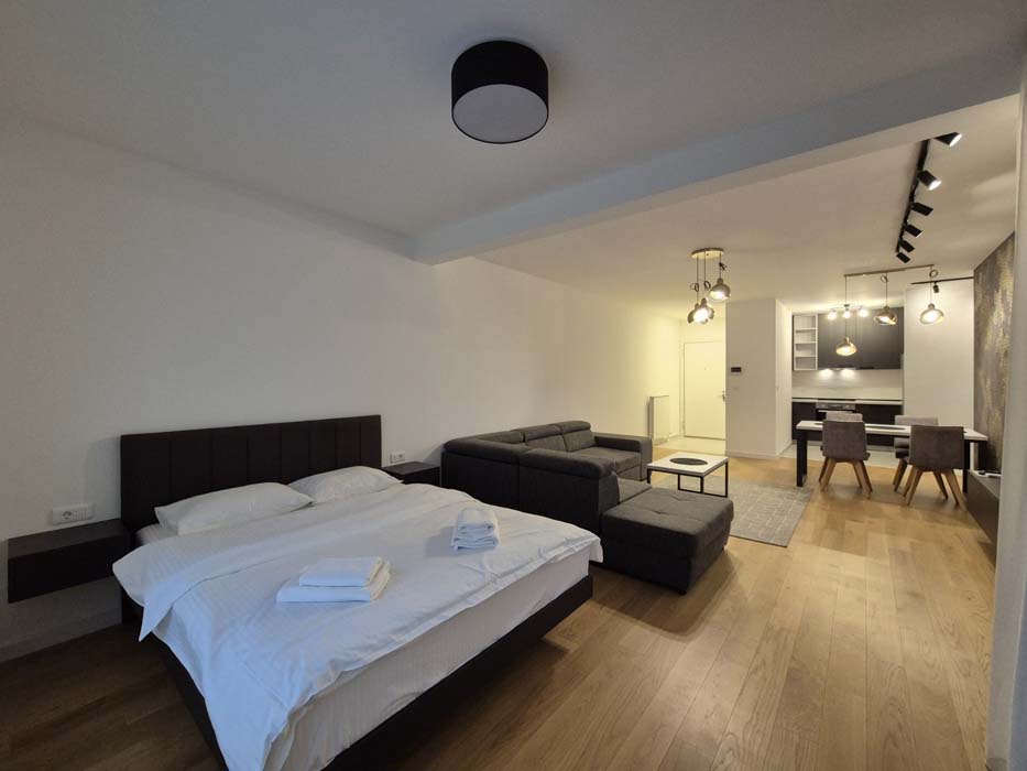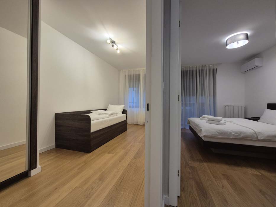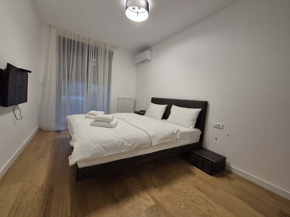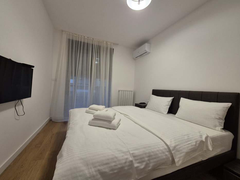 Park Vila apartmani su brižljivo projektovani omogućavajući konforan život prilagođen savremenom načinu života sa kvalitetnim materijalama uz poseban osvrt na zaštitu od buke i osvetljenost unutrašnjeg prostora. Apartman se sastoji iz velikog open-space dnevnog prostora sa kuhinjom i trpezarijom. Iz dnevnog prostora se izlazi na prostranu terasu. Pored toga, na raspolaganju su Vam dve spavaće sobe kao i moderno opremljeno kupatilo.